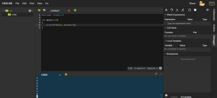 Проблема тех, кто не является студентом Гарварда и хочет пройти вводный курс CS50, заключается в том, что у них нет доступа к директории с учебными программкам в облачной IDE, зато есть доступ к самой IDE со всеми прикрученными костылями-библиотеками. Приходится вручную переписывать код из видеолекции и молиться, чтобы эти программы завелись.