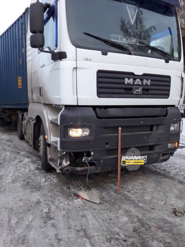 Вчера около 7 утра в пос. Голубой залив фура Man с прицепом, за рулем которой никого не было, начала движение и преградила путь ВАЗ 2107. Водитель Семерки не успел затормозить и врезался в прицеп фуры. Семерка получила серьезные повреждения.
