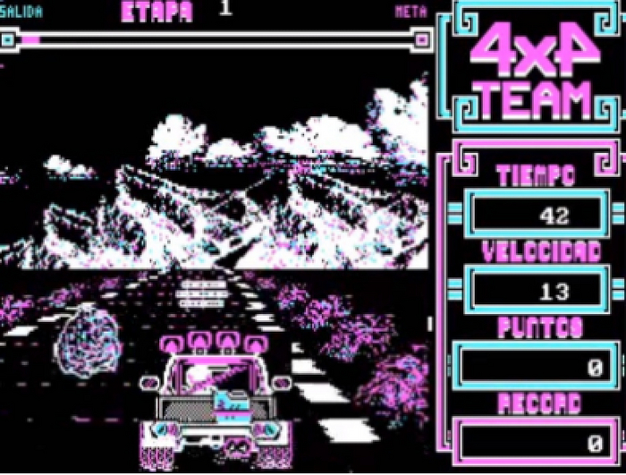 Начнем с самого древнего найденного артефакта. Игра под MS DOS аж 1988 года выпуска. Сразу на приветственном экране игрока встречает максимально шикарная для 88-го года Нива-пикап, что-то подобное тогда предлагали европейские дилеры. На ней же и предстоит гонять. Геймплей незамысловат: нужно просто объезжать препятствия на дороге под восьмибитный саундтрек. Посмотреть можно здесь.