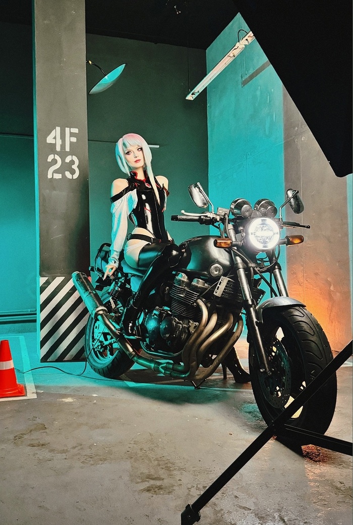 В 2022м году, аккурат перед закрытием студии MixArt, мне приспичило уложить парик на Люси - тогда чудесная Ari_Anna как раз учила меня укладывать парики, и по такому случаю - конечно же стоило запланировать съемку в самом красивом киберпанк-зале среди студий Москвы!