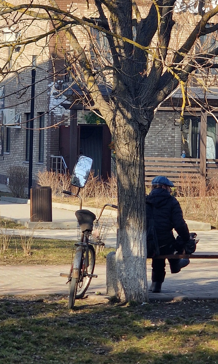 Такого мужичка сегодня увидел на улице. Ну конечно же зеркало заднего вида, на его велике, привлекло куда больше. :)