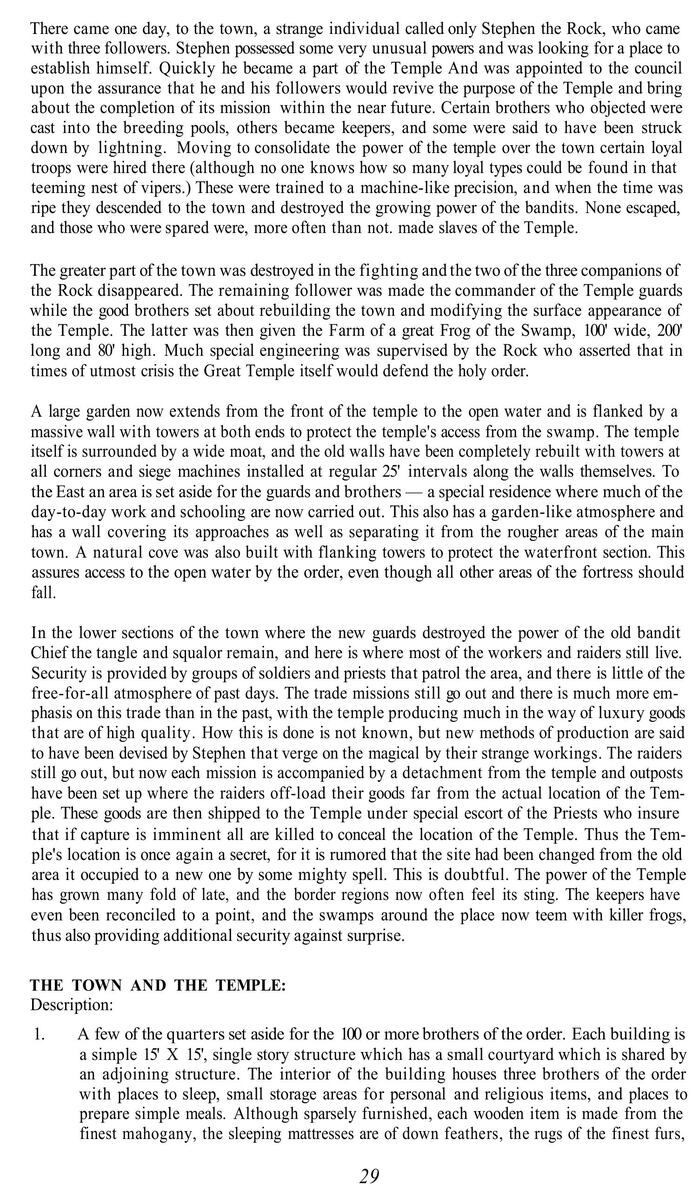 Такое положение вещей сохранялось почти целое поколение. Храм постепенно превратился из святого Ордена, посвящённого разрушению, в некое преступное королевство на болотах, охотящееся на любые проходящие мимо отряды.
