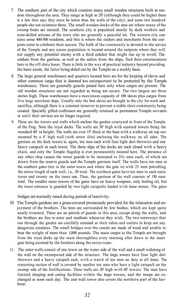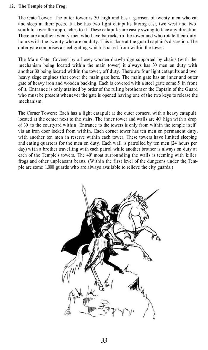 ров вокруг стен (40′) кишит лягушками‑убийцами и другими опасными существами;