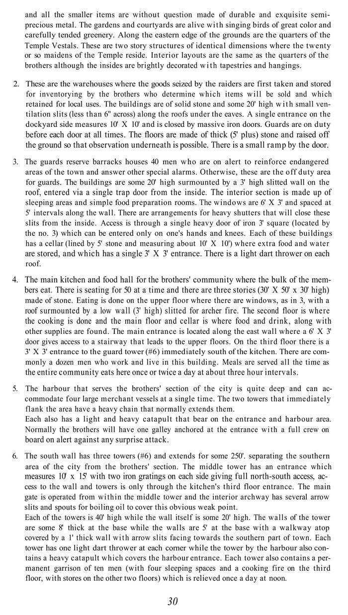 Несколько кварталов отведено для проживания 100 и более Братьев Ордена. Каждое здание — простая одноэтажная постройка размером 15′×15′, с небольшим внутренним двориком, который используется совместно с соседним строением.