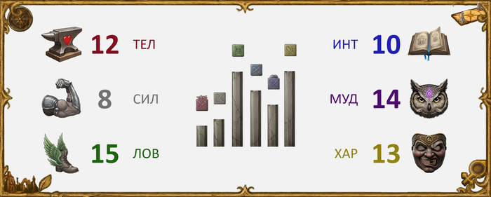 Харизма: умеет быть убедительной, когда нужно разжалобить кузнеца или отвлечь торговца