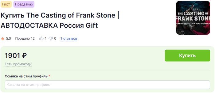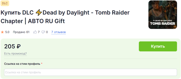 Переходим в категорию «Dead by Daylight» и выбираем подходящий товар. Также, как и в предыдущем способе, смотрим на его критерии, внимательно читаем описание и оплачиваем.