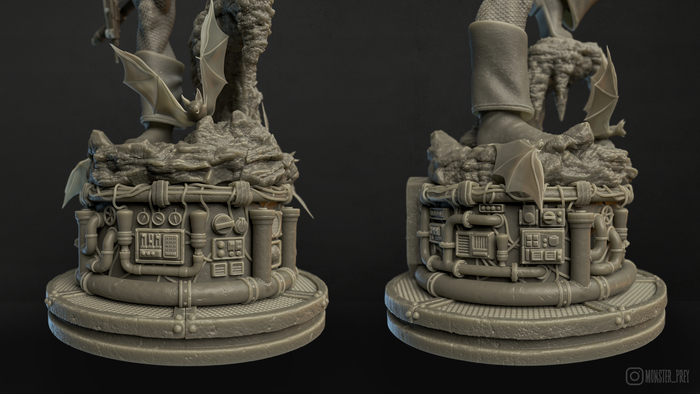 На создание подставки меня вдохновила пещера Бэтмена. Я хотел создать что-то старомодное, с железными решетками и трубами.