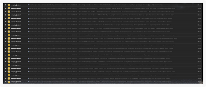 Рандомно подставлялись данные – телефон, имя, почта, а послание до неприличия одинаковое.