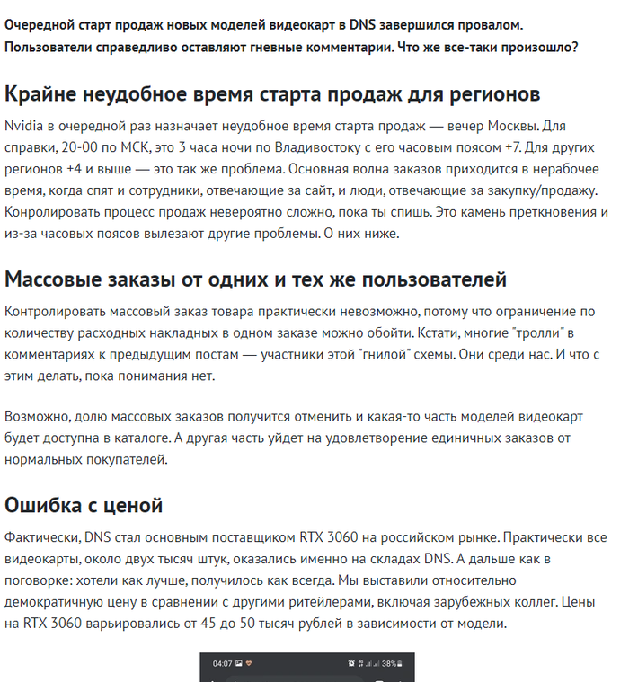 2) Человек, просидевший пол ночи (а кто из Сибири, так и всю) и получивший не видеокарту, а за щеку, имеет право написать гневный комментарий. И никогда больше у вас ничего не покупать. Заслужили.