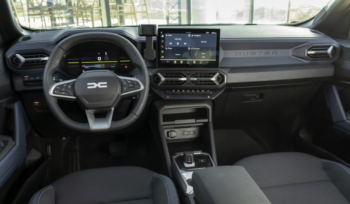 Впервые у Дастера появились виртуальные приборы на 7-дюймовом экране, хотя базовые версии по-прежнему оснащаются аналоговыми шкалами с дисплеем на 3,5 дюйма между ними. Предусмотрены фирменные держатели для смартфонов YouClip с четырьмя разъемами USB-C с подсветкой.