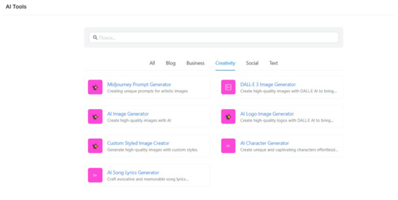 Jadve — инструмент для создания изображений, который работает на базе нейросетей ChatGPT и DALL-E. В отличие от других генераторов Jadve предлагает формы для конкретных задач. На платформе уже предусмотрены готовые шаблоны, где можно просто ввести необходимые данные — например, название компании, описание, и сферу деятельности для создания логотипа.