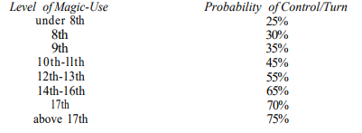 Контроль сферы зависит от интеллекта и уровня мага: базовые вероятности указаны в таблице (по уровню мага); за каждый пункт интеллекта свыше 12 — +2 % к вероятности контроля.