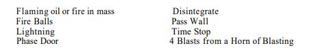 Книга бесконечных заклинаний. Не‑маг при первом касании — 5–20 очков урона, далее — безопасно; содержит 24 страницы, минимум 6 из них — пустые; вмещает от 3 до 18 заклинаний (70 % — магические, 30 % — клерикальные); заклинания любого уровня; владелец может колдовать столько раз, сколько захочет (если заклинание соответствует его возможностям); при использовании заклинания есть 10 % (несуммируемый) шанс, что страница перевернётся сама; случайные факторы (ветер, неосторожное движение) тоже могут перевернуть страницу; владельцу не нужно держать книгу при себе, чтобы использовать заклинания.