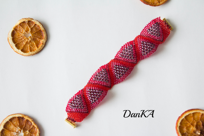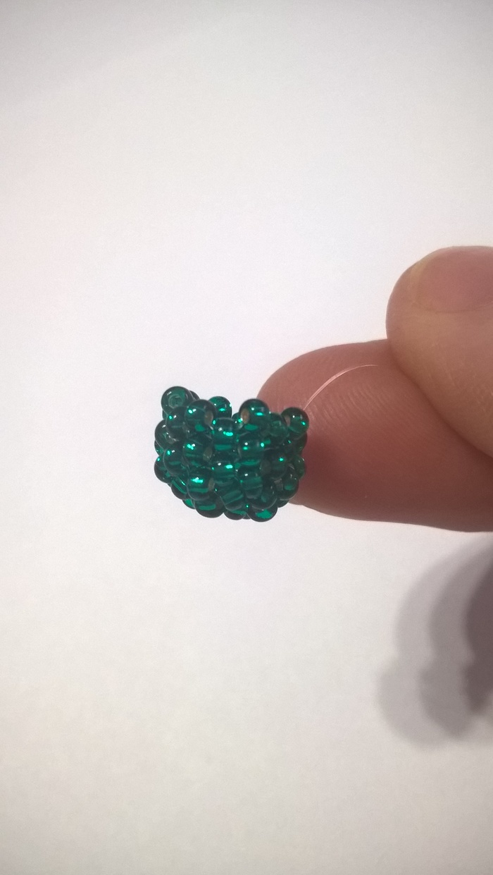 5-й ряд плетется просто: набираем 1 бисеринку, вводим иглу в следующую выступающую бисеринку (в бисерину предыдущего ряда). На этом наше расширение заканчивается. Получаем на выходе вот что: