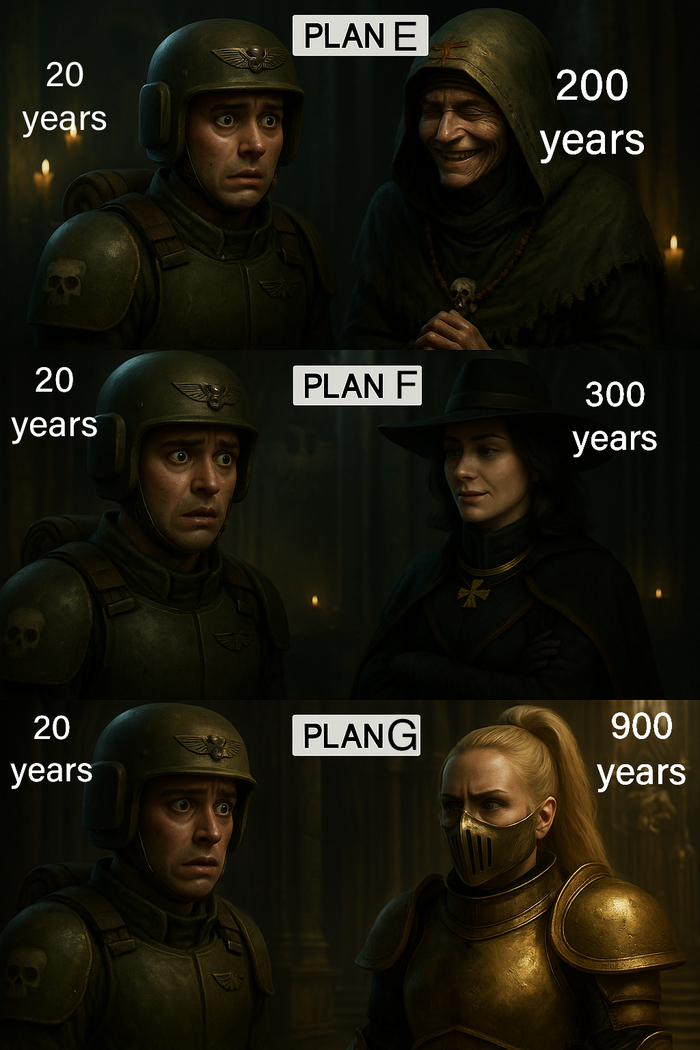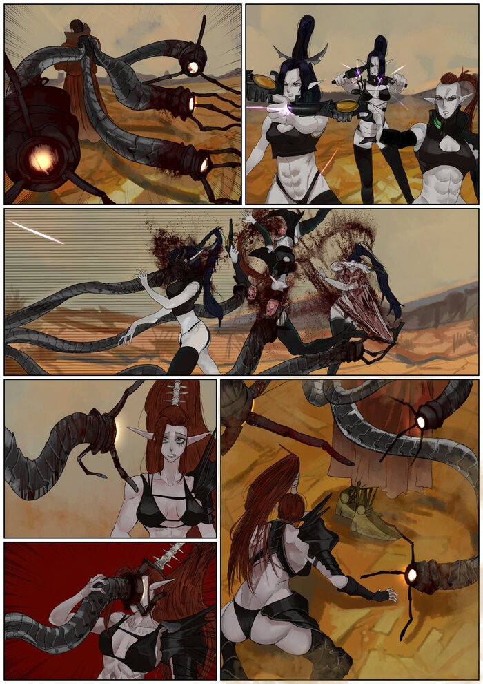 У меня довольно много невоплощённых проектов. Например вот этот. Тогда я хотел сделать что то 18+ с тёмным эльдаром и сестрой битвы. Но потом забросил. Страниц должно было быть три в цвете. До сих пор не уверен стоит ли заканчивать