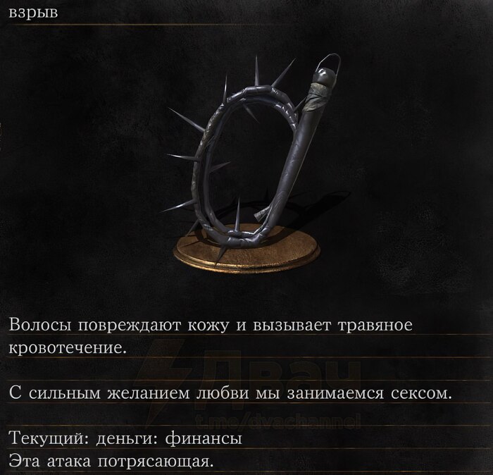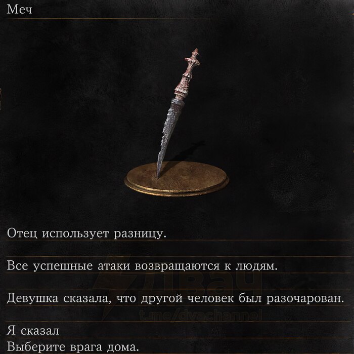 Копьё церкви. Босс-недоразумение, как по мне. Огромным мечом забил его со второго раза (убил бы с первого раза, но забыл, что тёлочка его возрождается). Хз, в общем. Никакой.