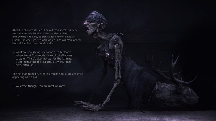 Вселенная игры коматозная, зазеркальная, воспалённая. Это обломок Восточной Европы конца прошлого века – поросший мхом, грибами, легендами. Здесь призраки в заброшенных хижинах соседствуют с уродцами в противогазах-«слониках», а в озере живут сны.