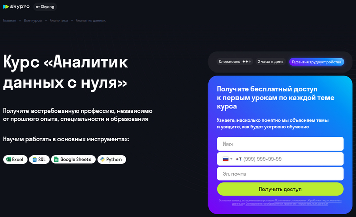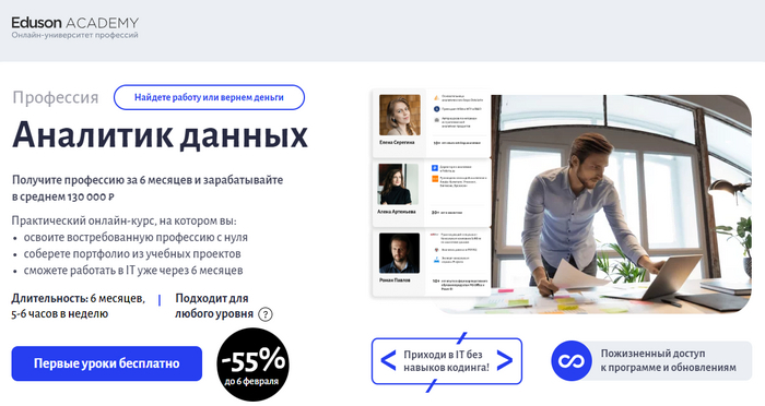 Особенности: Бесплатный доступ к 3 модулям. До 9 проектов в портфолио, помощь в трудоустройстве.