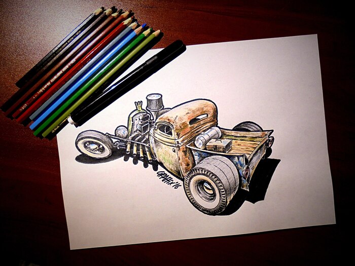 Часть батарей разместил под капотом, часть вместо бензобака. Поставил симпатичную приборную панель — и получилось диво дивное.