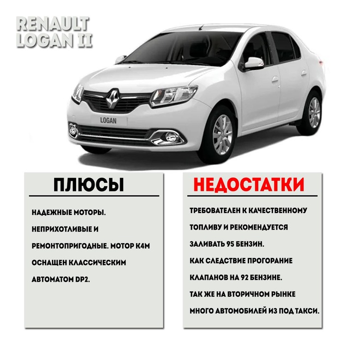 Недостатки: существенных недостатков у автомобиля нет. Так же требователен как и Логан к качеству топлива и горюче смазочных материалов.