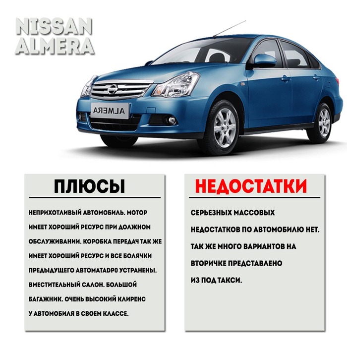 Минусы: серьезных массовых недостатков по автомобилю нет. Так же много вариантов на вторичке представлено из под такси.
