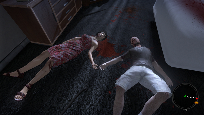 4. Что касается сюжета нифига не понятно. Вирус.. Зомби.. Потом бац и нужно бежать с номера отеля. Потом какой-то придурок наставляет на вас биту и даёт три секунды чтобы кивнуть. Может ещё ему ключи от своего дома отдать?