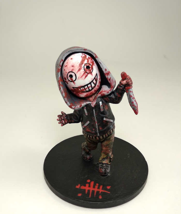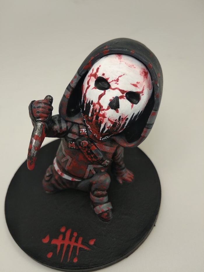 Всем привет! Хочу поделится своей работой - фигуркой по мотивам игры Dead by Daylight, очень люблю атмосферу этой игры и ужастики в целом, поэтому смастерила уже много персонажей из этой игры) Материалы: полимерная глина Fimo и Артифакт, акриловые краски Ладога и матовый лак Pebeo. А так же подставку декорировала, настоящими камушками, сухоцветами, мхом и искусственным снегом. Всем приятного просмотра и спасибо за внимание!)