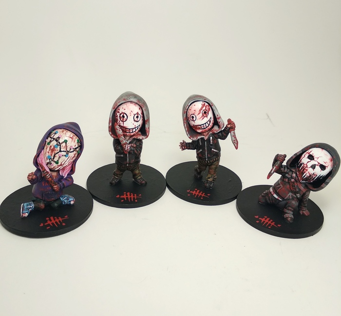 Всем привет! сегодня хочу показать свои фигурки в стилистике чиби, которые делала по мотивам игры Dead by Daylight . Материалы: каркас из медной проволоки, полимерная глина Fimo и Артифакт, акриловые краски Ладога и матовый лак Pebeo. Приятного просмотра и спасибо за внимание!