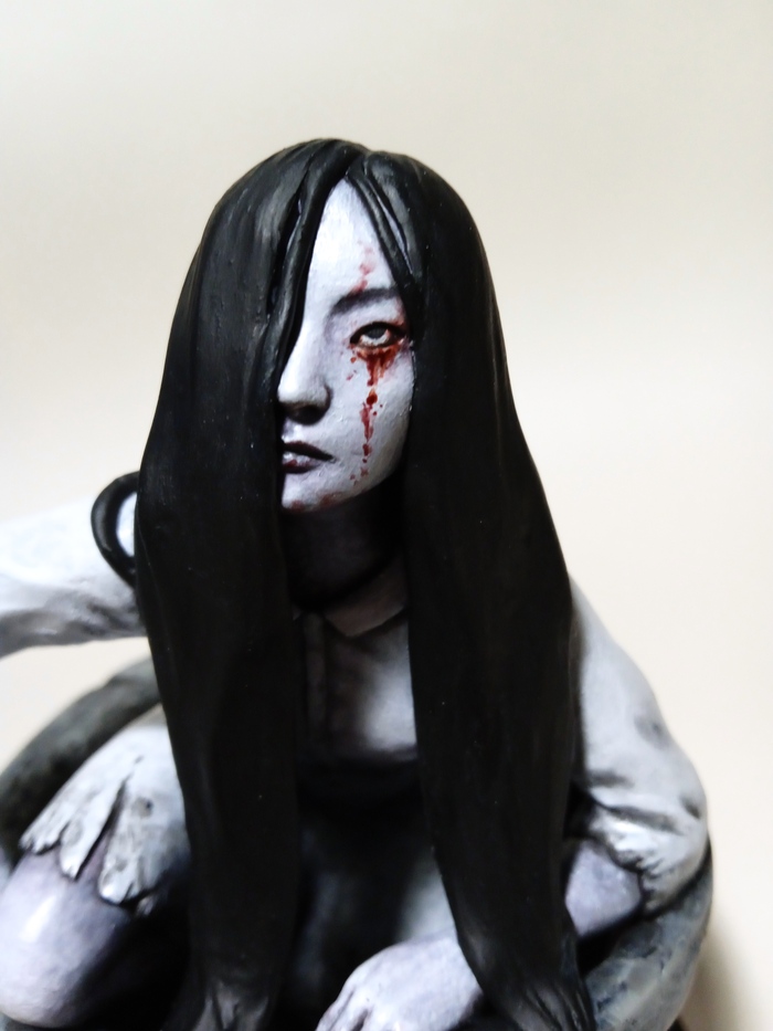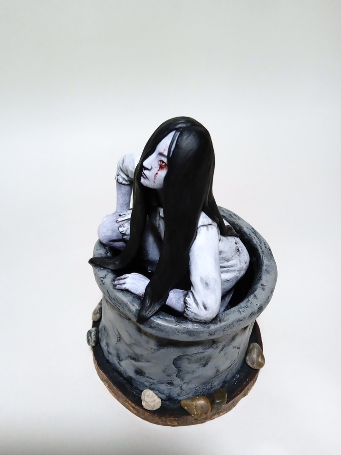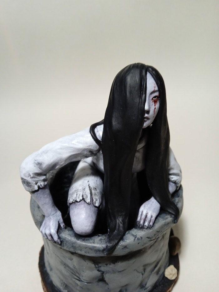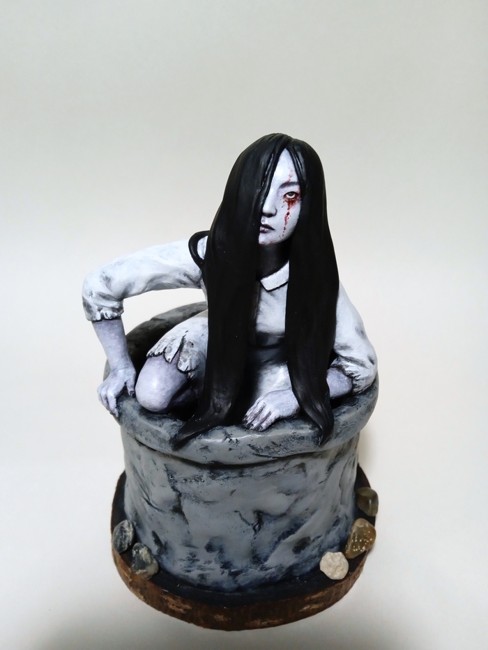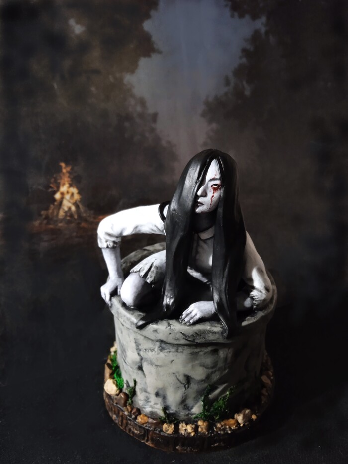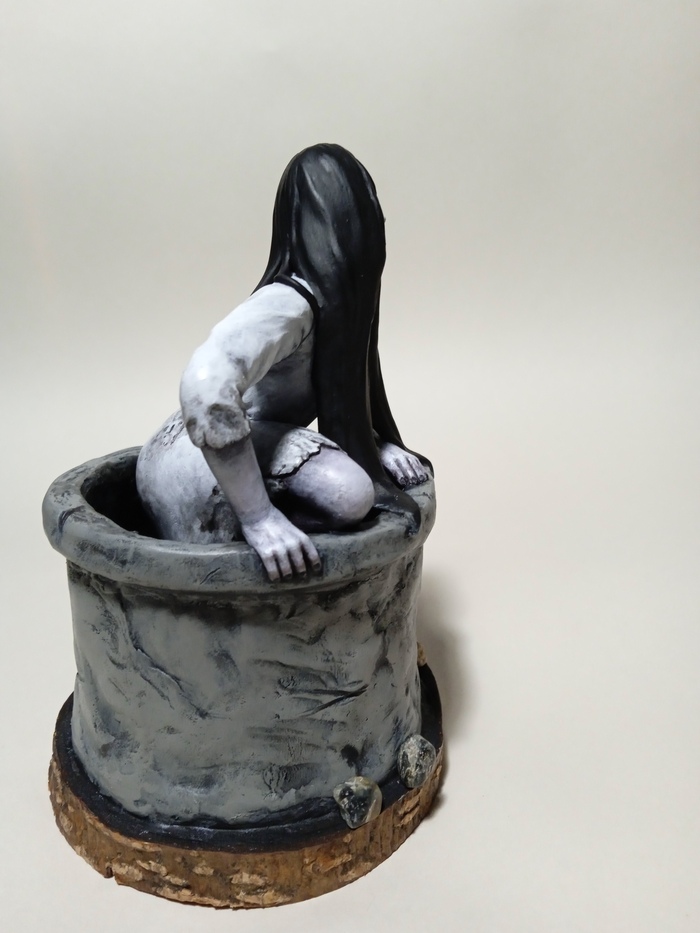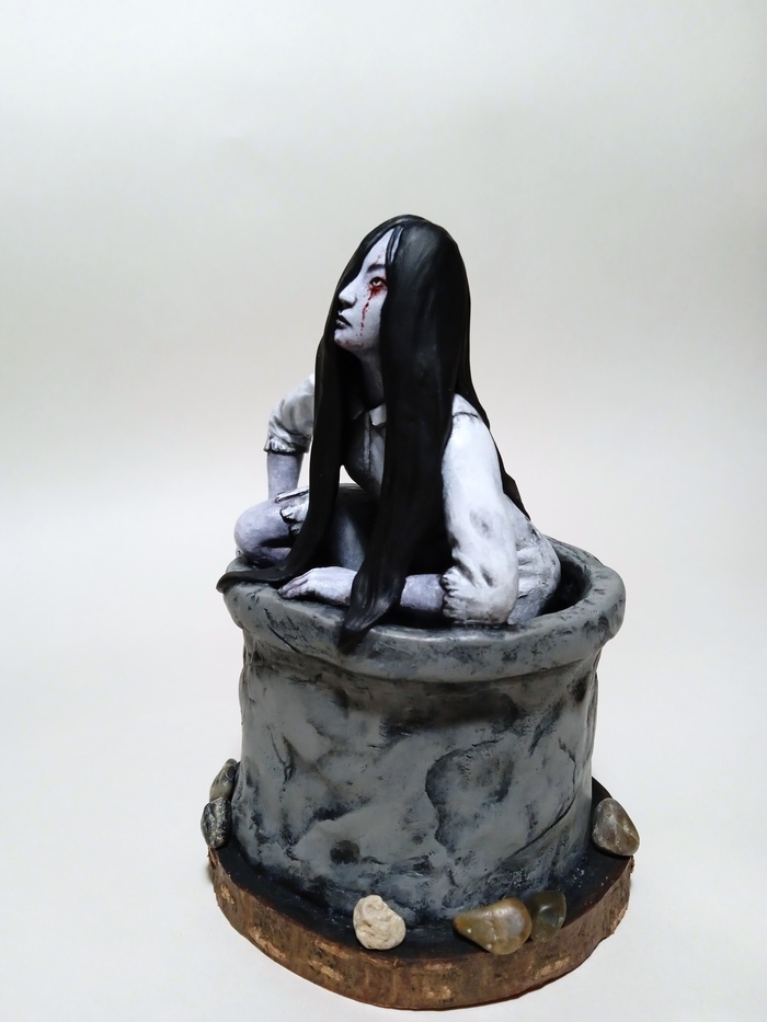 Всем привет! сегодня хочу показать фигурку Садако, которую делала по мотивам игры Dead by Daylight. Материалы: каркас из медной проволоки, полимерная глина Fimo и Артифакт, акриловые краски Ладога и матовый лак Pebeo, камушки и мох. Приятного просмотра и спасибо за внимание!