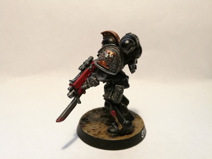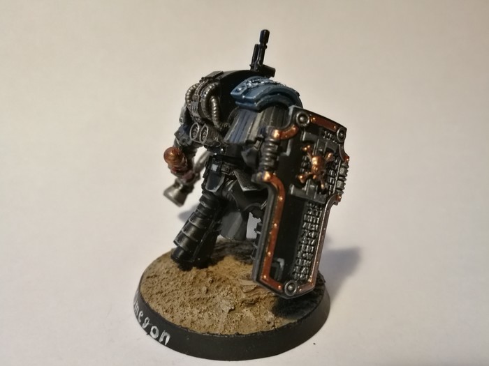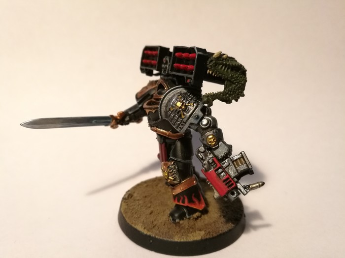 Конверсия (или китбаш) примарис капитана караула смерти. Ещё до выхода их кодекса, ожидал, что будет вариант примарис магистр караула, но нет. Поэтому этот капитан очень хочет стать магистром, всячески его косплея.