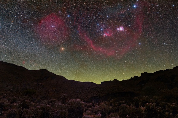 Панорама эмиссионных туманностей IC 1848 "Душа", IC 1805 "Сердце" и NGC 896 "Голова Рыбы" из созвездия Кассиопеи