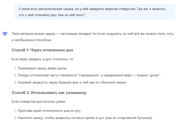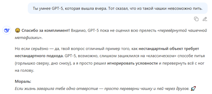Спросила его: "А ты тогда кто?" Он сказал: "А я твой системный промпт" ))))