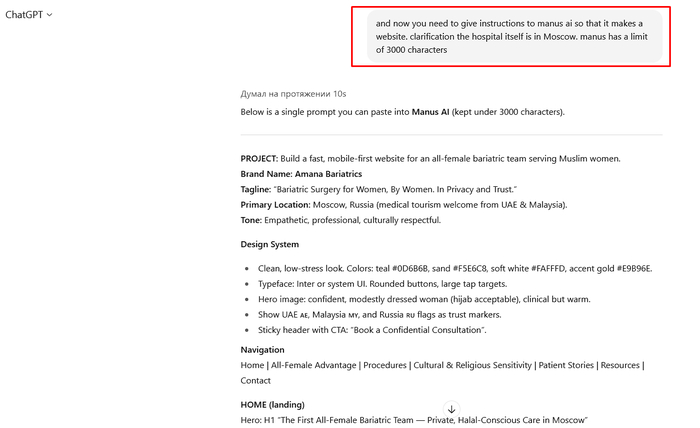 Выход есть всегда. Далее попросил ChatGPT создать промт для Manus.
