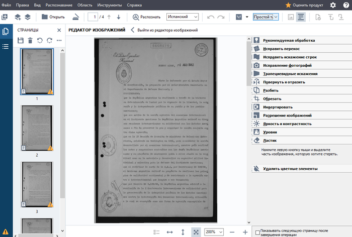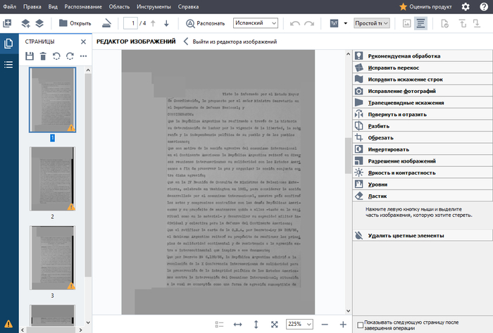 Будем исправлять. Заодно отредактируем сами изображения сканов, чтобы облегчить работу программе для распознавания символов. Нажимаем "Открыть редактор изображений". В этот редактор так же можно перейти через панель инструментов сверху.