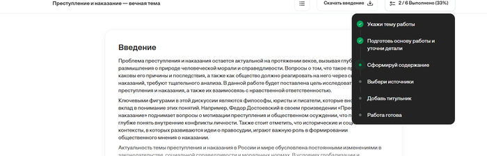 генерирует развёрнутые ответы с академической структурой и списком литературы;