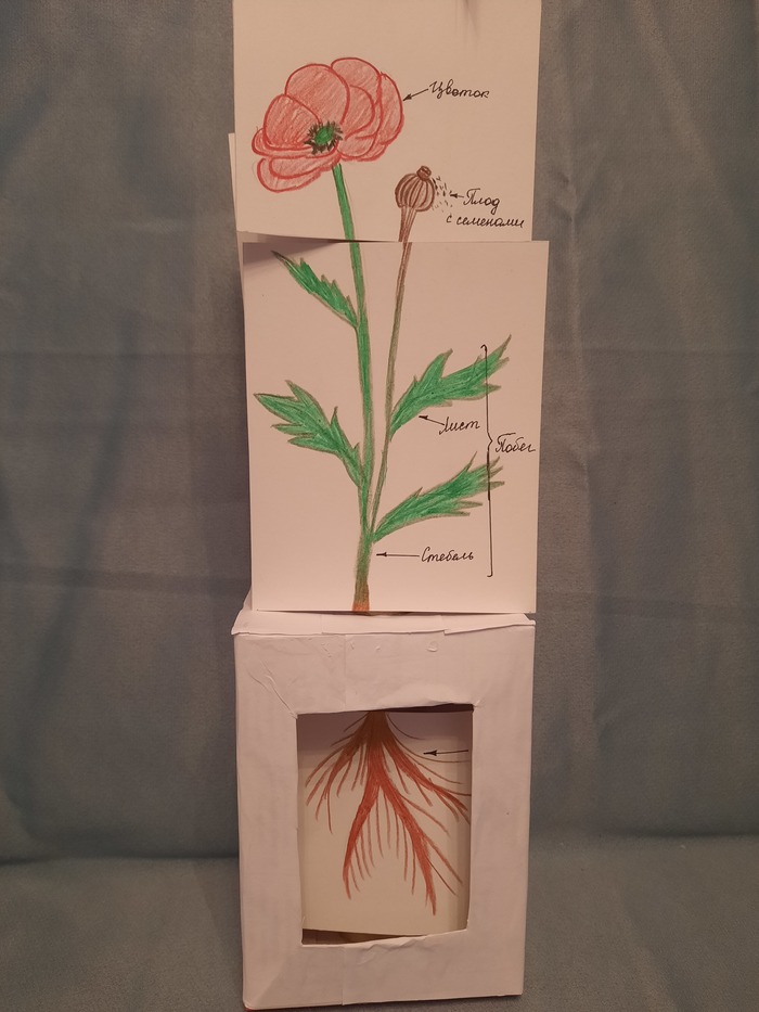 Для его изготовления необходимо: картонная трубка из-под фольги, картонная коробочка, бумага, клей, липучки на клеевой основе. Немного свободного времени — и разборное строение цветка готово.