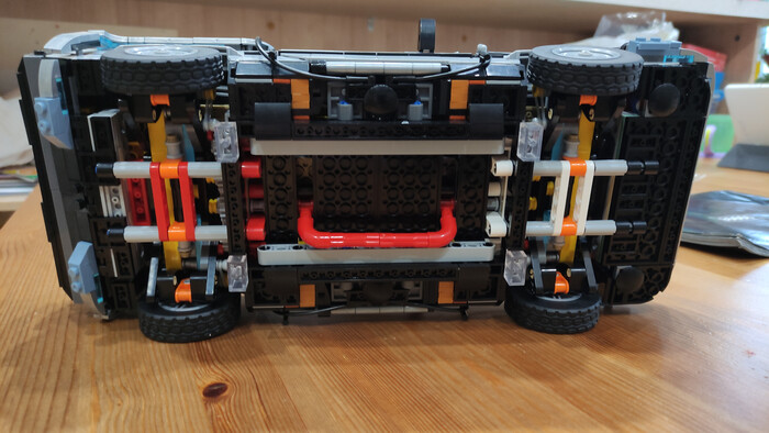 Эта модель содержит функцию по подъему колёс. Рычаг находится снизу.