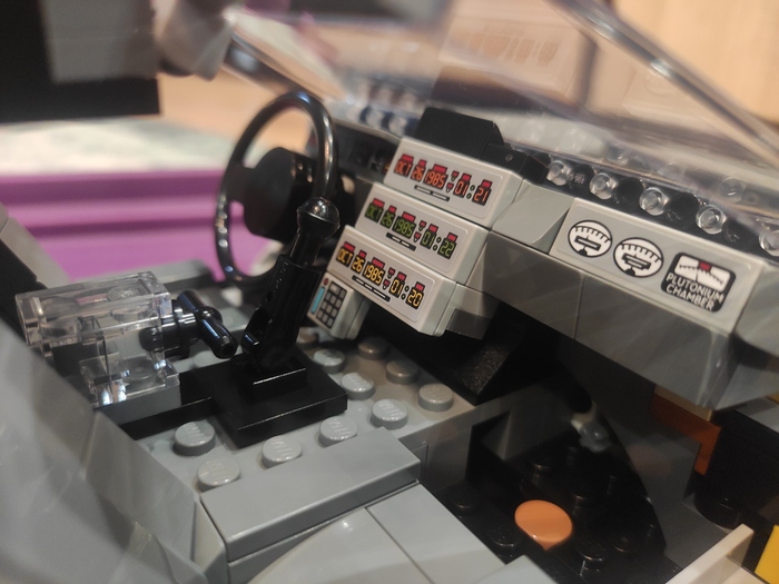 К минусам можно отнести то, что двери не держатся в открытом положении и опускаются под собственным весом. Так же довольно странно использование большого количества мелких деталей с принтами и использование стикеров, некоторые из них так же можно было бы запринтить. Не понравилось и то что для сборки навесного оборудования для трех версий модели часть деталей используется в уже готовой сборке, поэтому не получится по быстрому снять-поставить что-то, быстро превратив машину в модель из другой части фильма, хотя вопрос можно было бы решить доложив всего два-три десятка вполне стандартных, не уникальных деталей.