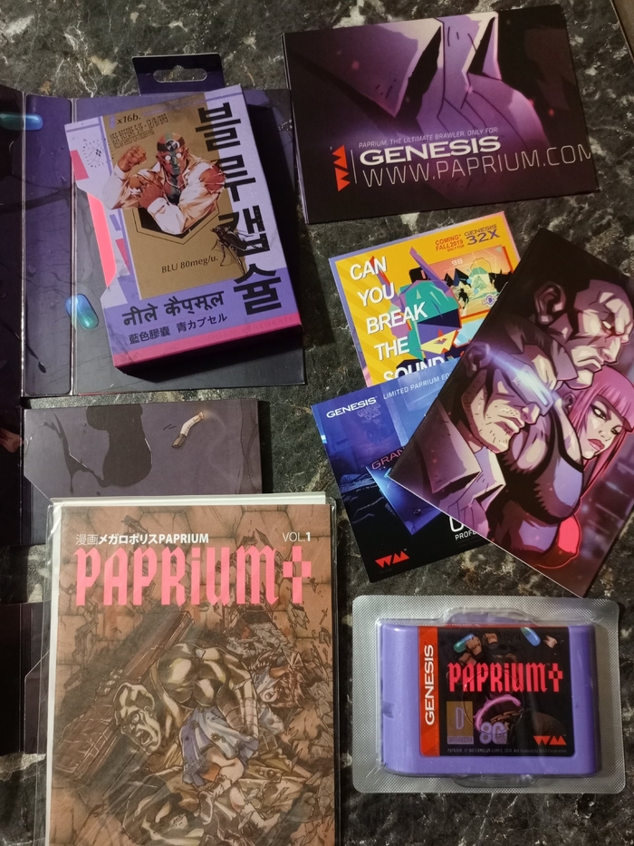 Paprium — это игра в жанре beat ’em up, похожая по стилю на другие игры в жанре beat ’em up, вышедшие на Sega Mega Drive в конце 80-х — начале 90-х годов, такие как Golden Axe и Streets of Rage, с визуальным оформлением в стиле различных произведений в жанре киберпанк. Разработанная студией WaterMelon и выпущенная в 2020 году. Она была анонсирована в рамках краудфандинговой кампании в 2012 году. Разработка заняла восемь лет, при этом практически не было взаимодействия с спонсорами игры или прессой, и многие считали игру виртуальным продуктом.