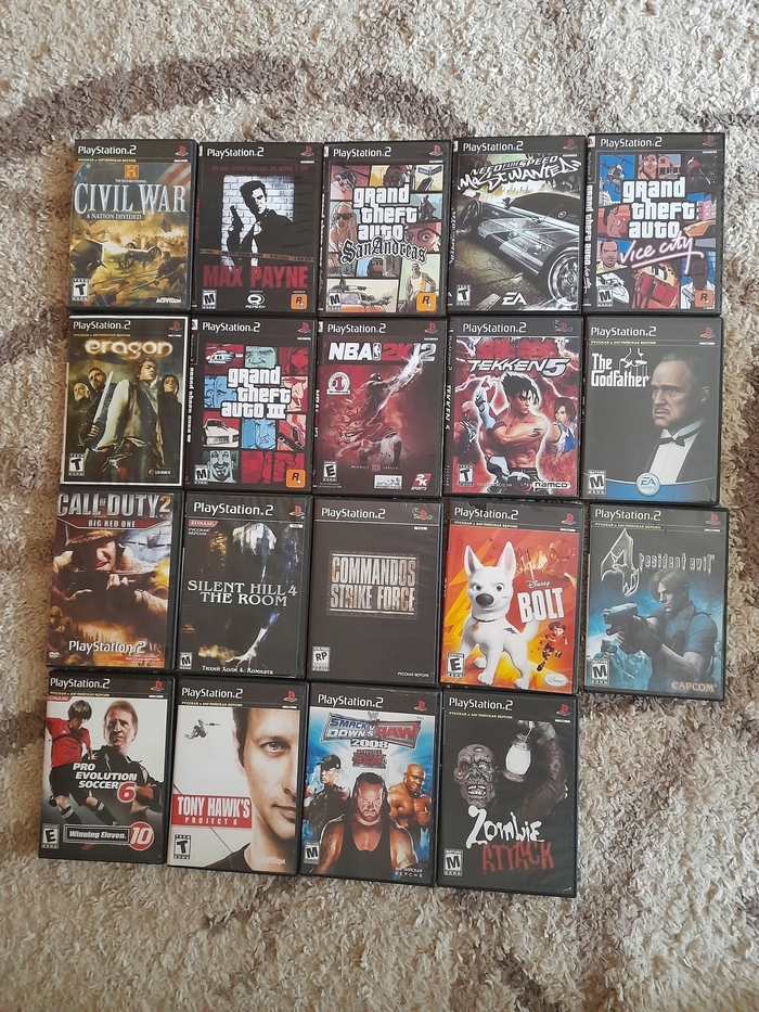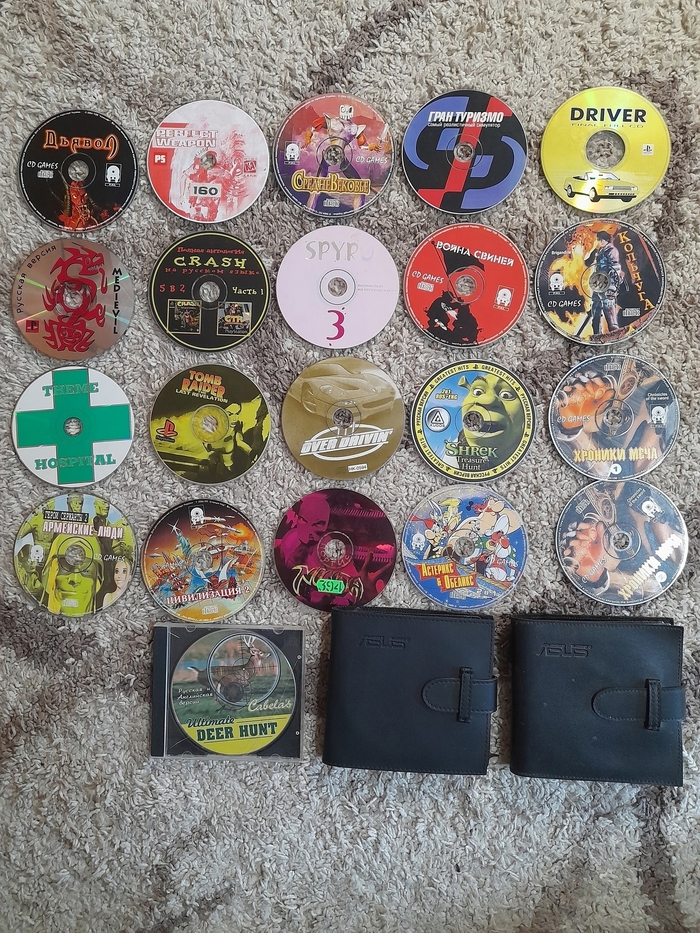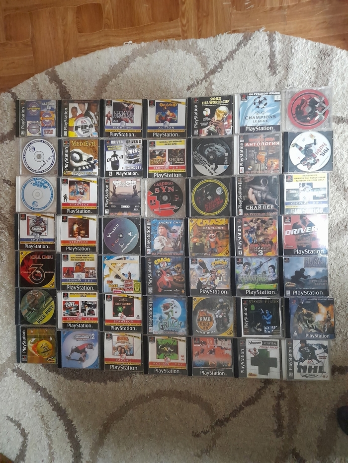 | Список того, что у меня есть в игровой коллекции: ■ 1. "Sony": Playstation: One. Slim. SCPH- 102 | Оригинальный комплект. Приобрёл за 4520 ₽ с доставкой. ■ 2. "Sony": Playstation 2. Slim. SCPH- 77008 | Оригинальный комплект. Геймпад реплика. Приобрёл с доставкой за 4000 ₽. ■ 3. "Sega": Retro Genesis HD Ultra (HDMI) | 150 IN 1. Китайский Клон, Российской фирмы: Genesis. Приобрёл с доставкой за 1700 ₽. ■ 4. "XBOX 360 E" | Приобрёл с доставкой за 5194 ₽. Скоро, фото отчёт. ■ Карта памяти, "пиратский клон": 1 Mega. | Для "Sony": PS One. ■ Карта памяти, "пиратский клон": 1 Mega. | Для "Sony": PS One. ■ Карта памяти: 256 MB. Для "Sony": PS 2. "С переключателем, пиратский: клон". ■ Карта памяти, оригинал: 8 MB. "Sony": PS 2. Лагает, но иногда работает. ■ "Пиратские" стародельные DVD: диски и новодел. Для "Sony": PS 2. | 20 штук. ■ "Пиратские" штамповки, стародельные диски в CD коробках. | 37 штук. Для "Sony": PS One. ■ "Пиратские" диски, без коробок, в двух портмоне: чехлах: "Asus", сильно поцарапанные. | 24 штук. Для "Sony": PS One. ■ "Пиратские" новодельные, болванки с обложками, в CD: коробке, новые диски, для "Sony": PS One.| 12 штук. |