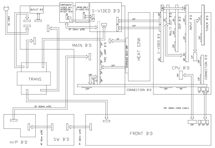 В сервис-мануале эта информация в явном виде не указана (привожу кусок схемы с трансформатором и схему соединения плат внутри ресивера здесь, на всякий случай полный мануал в облаке: https://cloud.mail.ru/public/G6Eg/9V3Whenkg).