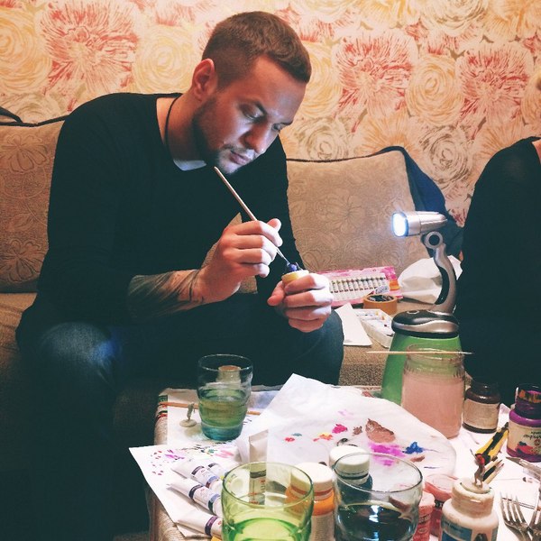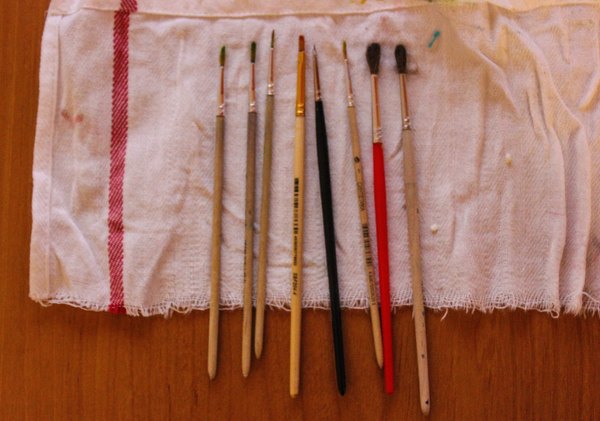 Сам процесс и материалы, которые использовал (краски и кисти). Отдельно спасибо моей помощнице, которая тоже проявила к этому делу немалый интерес.