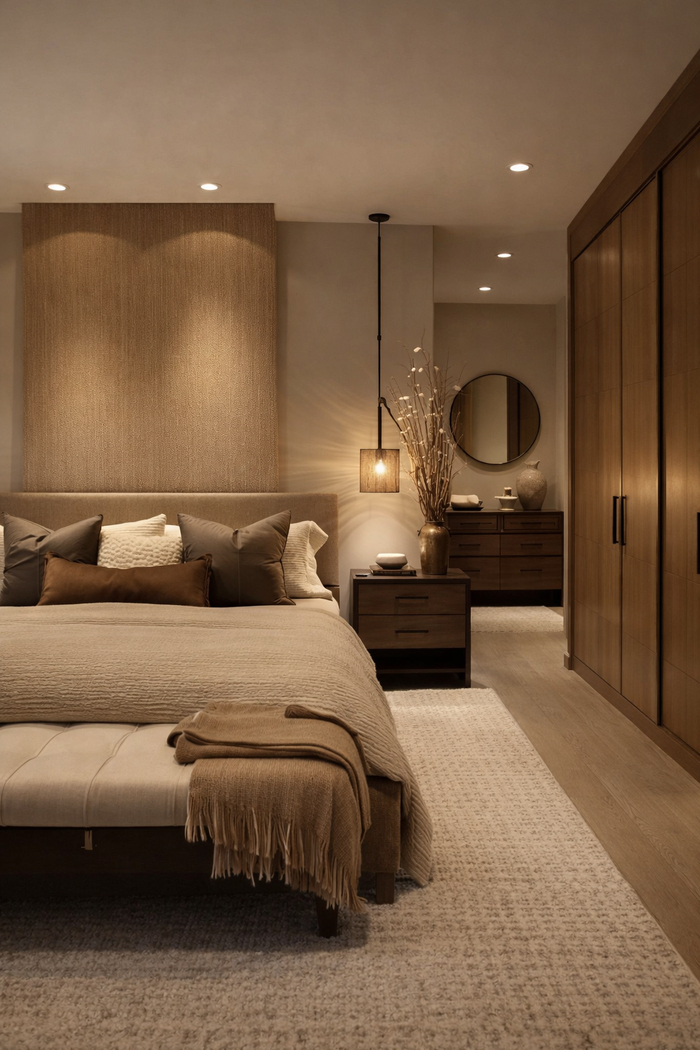 Её ключевое отличие от холодных нейтралов — в температуре и настроении. Если серый создаёт эффект дистанции, то умбра добавляет тактильность и уют. Она не конфликтует с другими элементами обстановки, но выглядит глубже и выразительнее, чем привычные нейтральные решения.