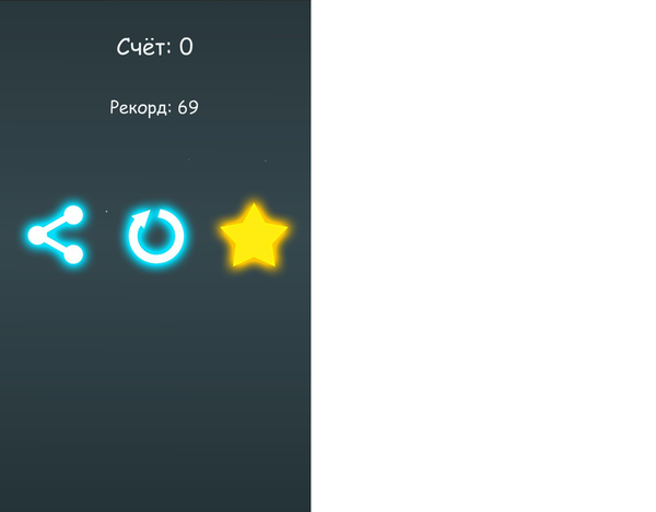 Ну и собственно последняя сцена. Счёт по текущей игре и ваш рекорд. Не забываем ставить пятёрки)))