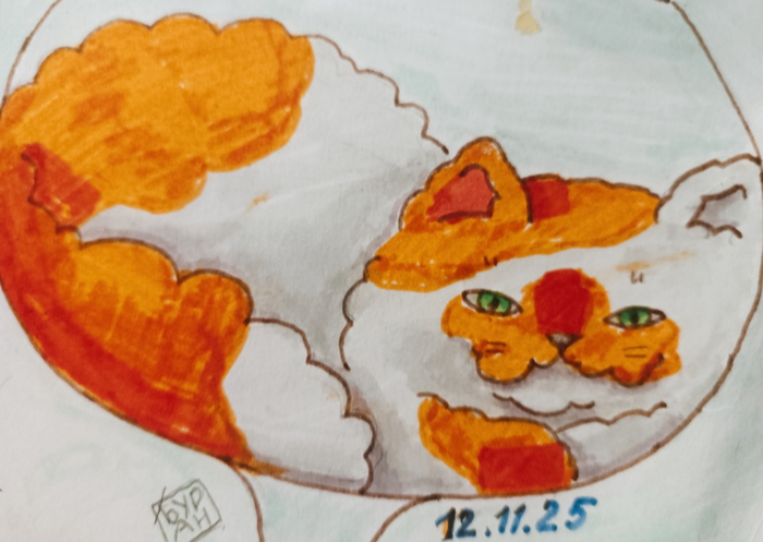 Кота в кастрюле может и нарисую однажды, а пока в прозрачном бокале для конфет.