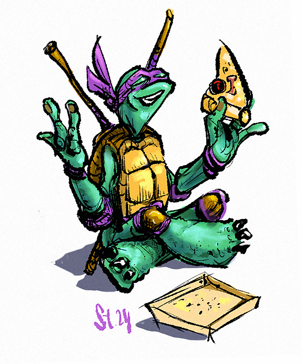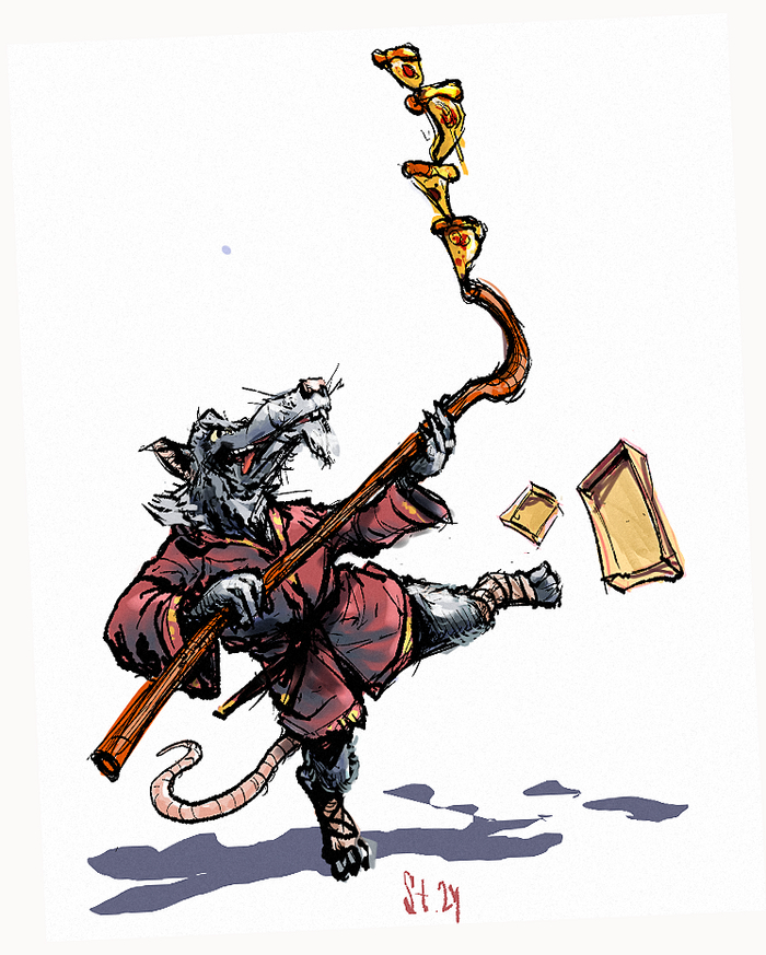 Я сначала думал добавить какого-нибудь персонажа посложнее, поинтереснее, с деталями, но сроки уже поджимали, поэтому я подумал что Шреддера в такой упрощённой стилистике легче всего сделать, да и он наиболее узнаваемый персонаж.