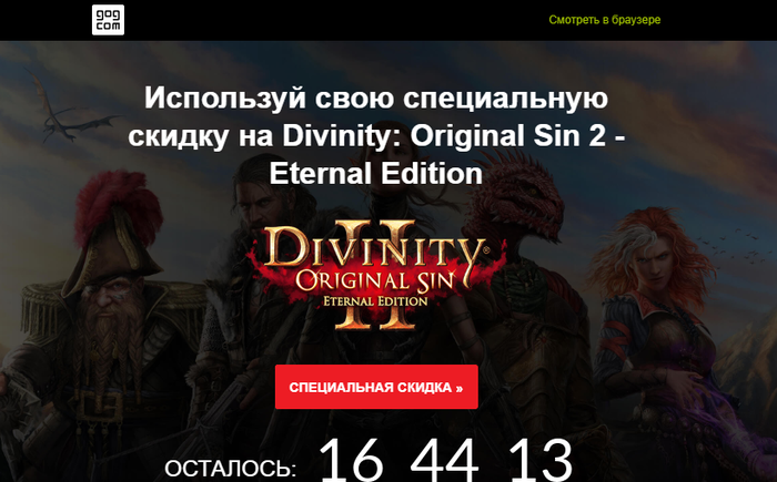 Специальная временная скидка на Divinity Original Sin 2 Eternal Edition в GoG