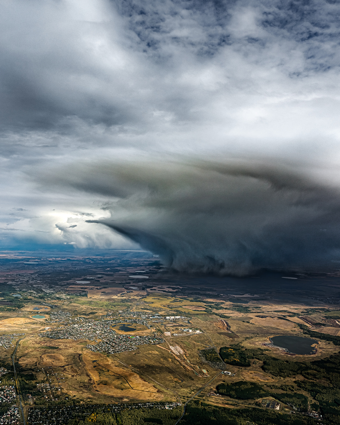 Может показаться, что "закат" тут лишний, но просто поверьте, это действительно закат, который видится из долины реки Катунь. Снято с довольно большой высоты (порядка 400 метров) – ожидаемо, сильный ветер прилагается к прекрасным пейзажам.