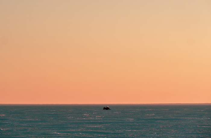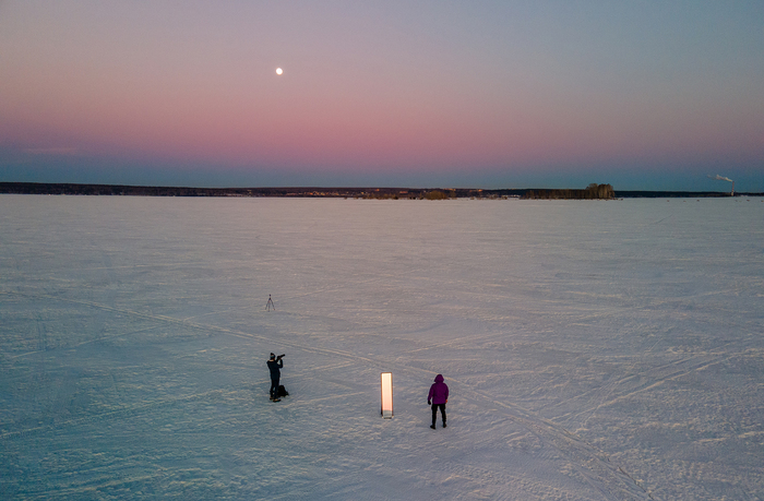 Хотелось бы отметить, что сочетание огромного белого открытого пространства вокруг, огненно-оранжевый градиент с одной стороны, розово-фиолетовый градиент с полной Луной с другой стороны, делали освещение вокруг просто фантастическим. Я ещё никогда не встречал подобного света за свою "фотожизнь" и был счастлив как ребёнок. Спасибо товарищу, спасибо идеальным погодным условиям в нужный день.