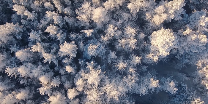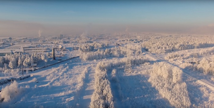 Попробовал полетать в -40 на коптере. Птичка выдержала мороз и сняла отличные белоснежные виды и парящее водохранилище.